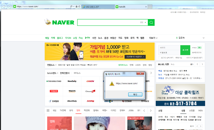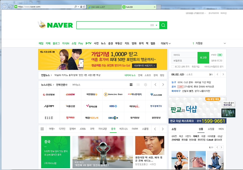 해당 웹 서버로 접근하여 index.html 파일을 호출한다. target 서버로 naver.com을 사용하기로 했기에 입력 창에 이미 https://www.naver.com이 기입되어 있는 것을 확인 할 수 있다. 이제 "Load Victim Page" 버튼을 클릭하게 되면 새탭에 네이버 페이지가 뜨게 된다.