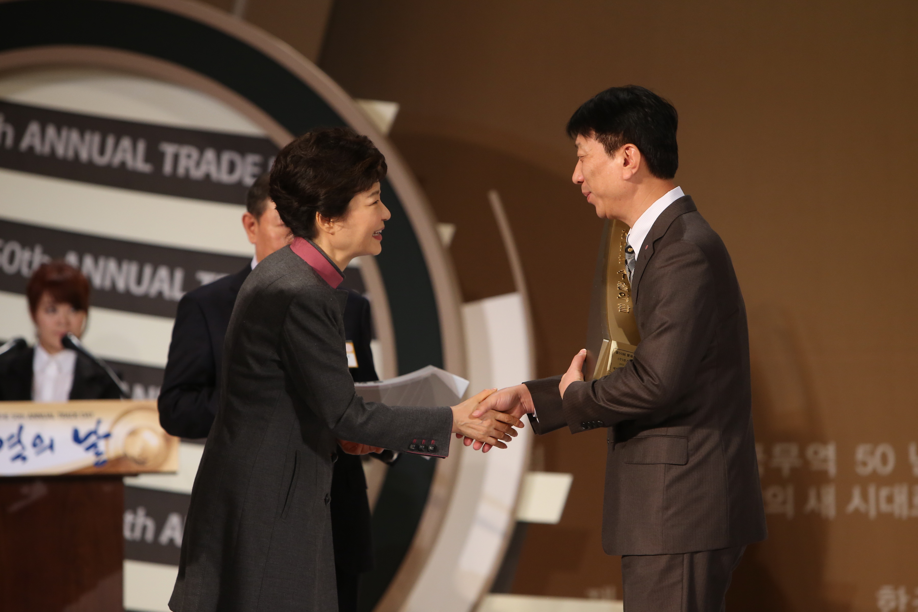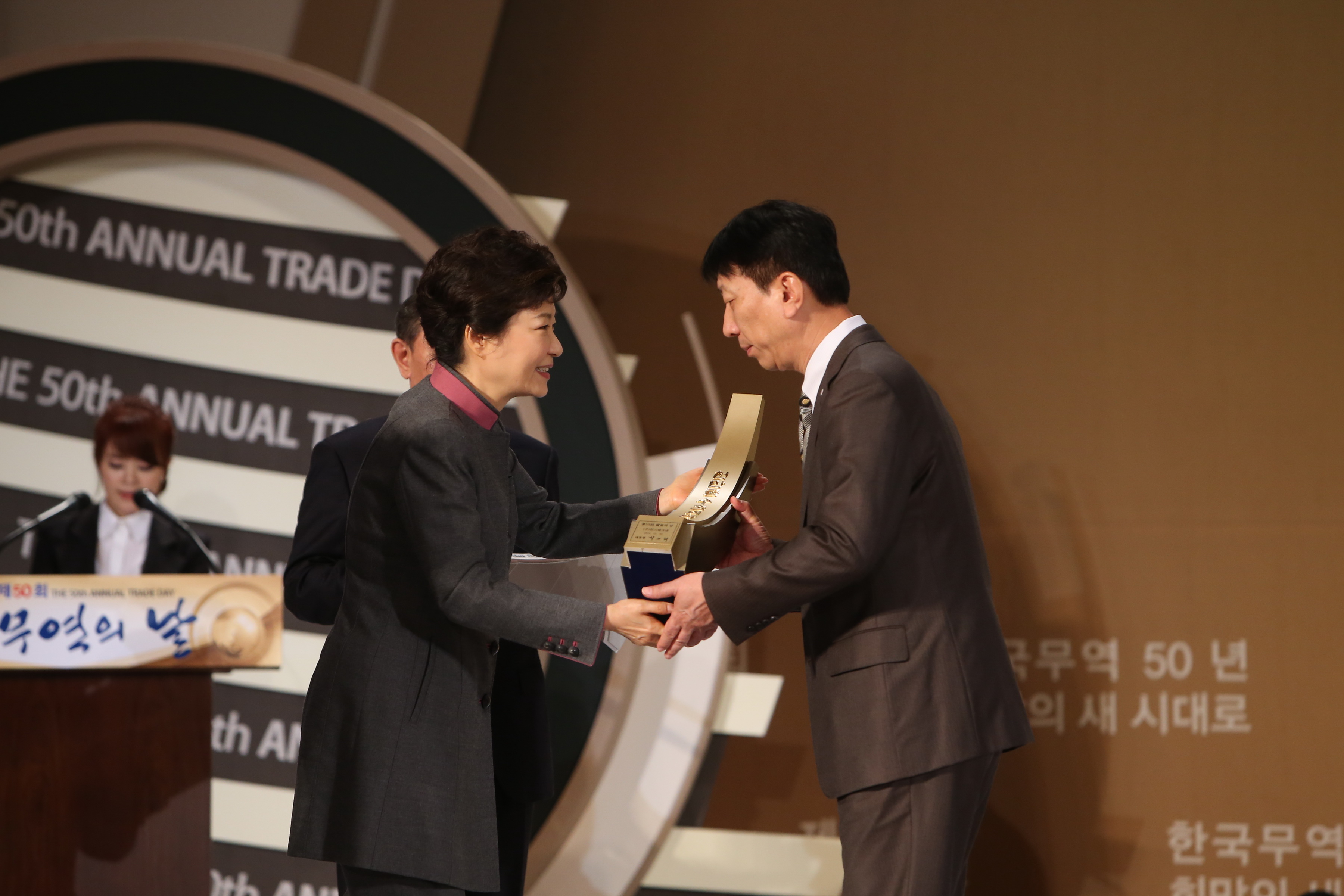 성공적인 해외시장 진출로 윈스가 1천만불 수출의 탑을 수상했습니다. 제50회 무역의 날 기념 행사에서 1천만불 수출의 탑 대표사로 박근혜 대통령에게 직접 수여 받았습니다.